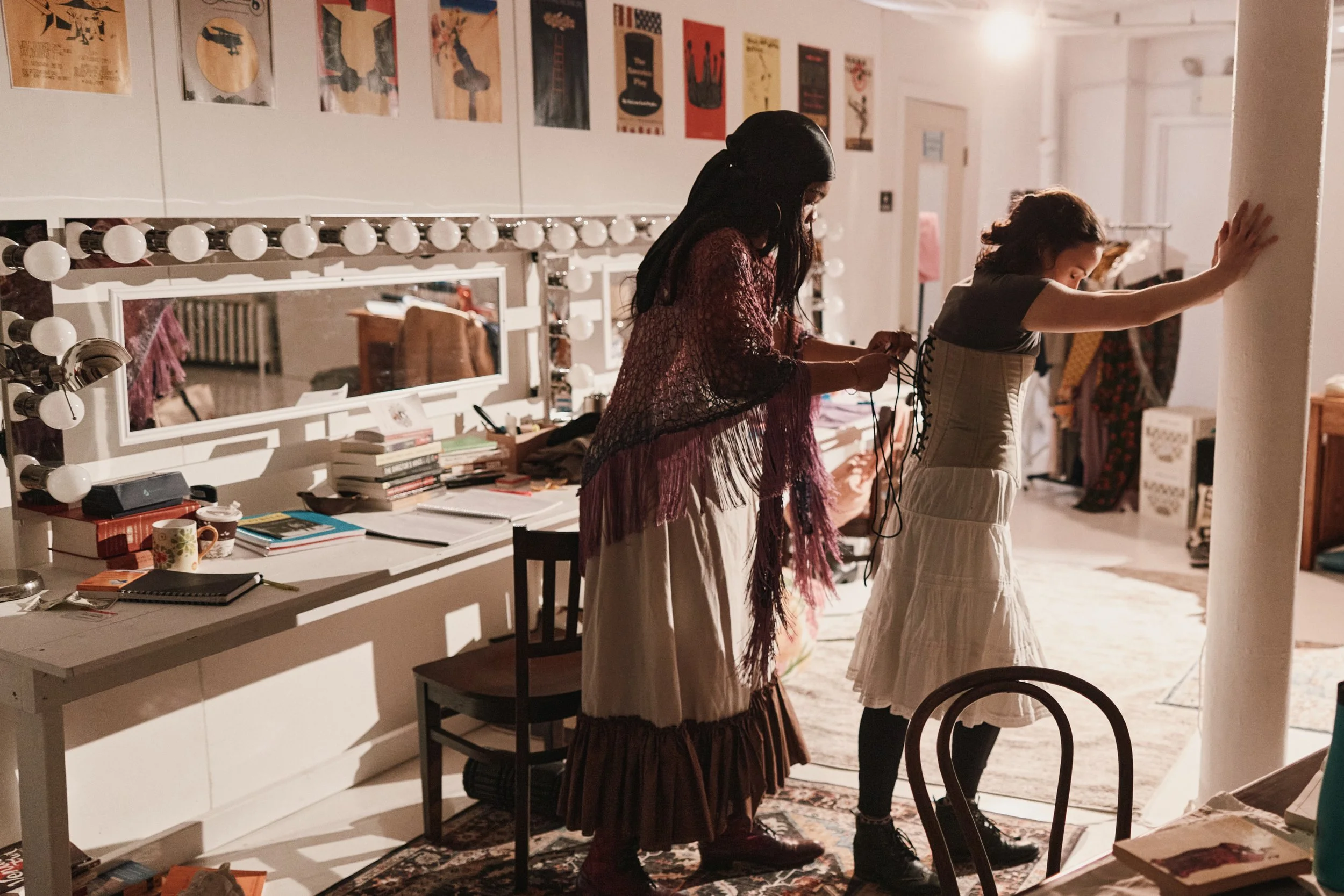 Set Design by Wilson Chin, Costume Design by Asta Bennie Hostetter, Lighting Design by Wheeler Moon, Props by Denise J Grillo.